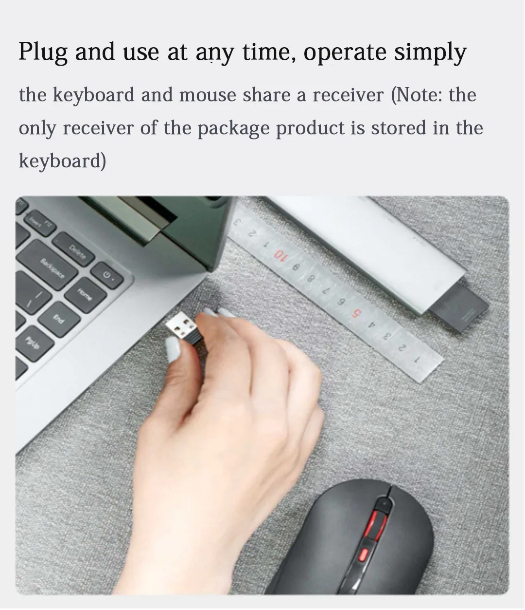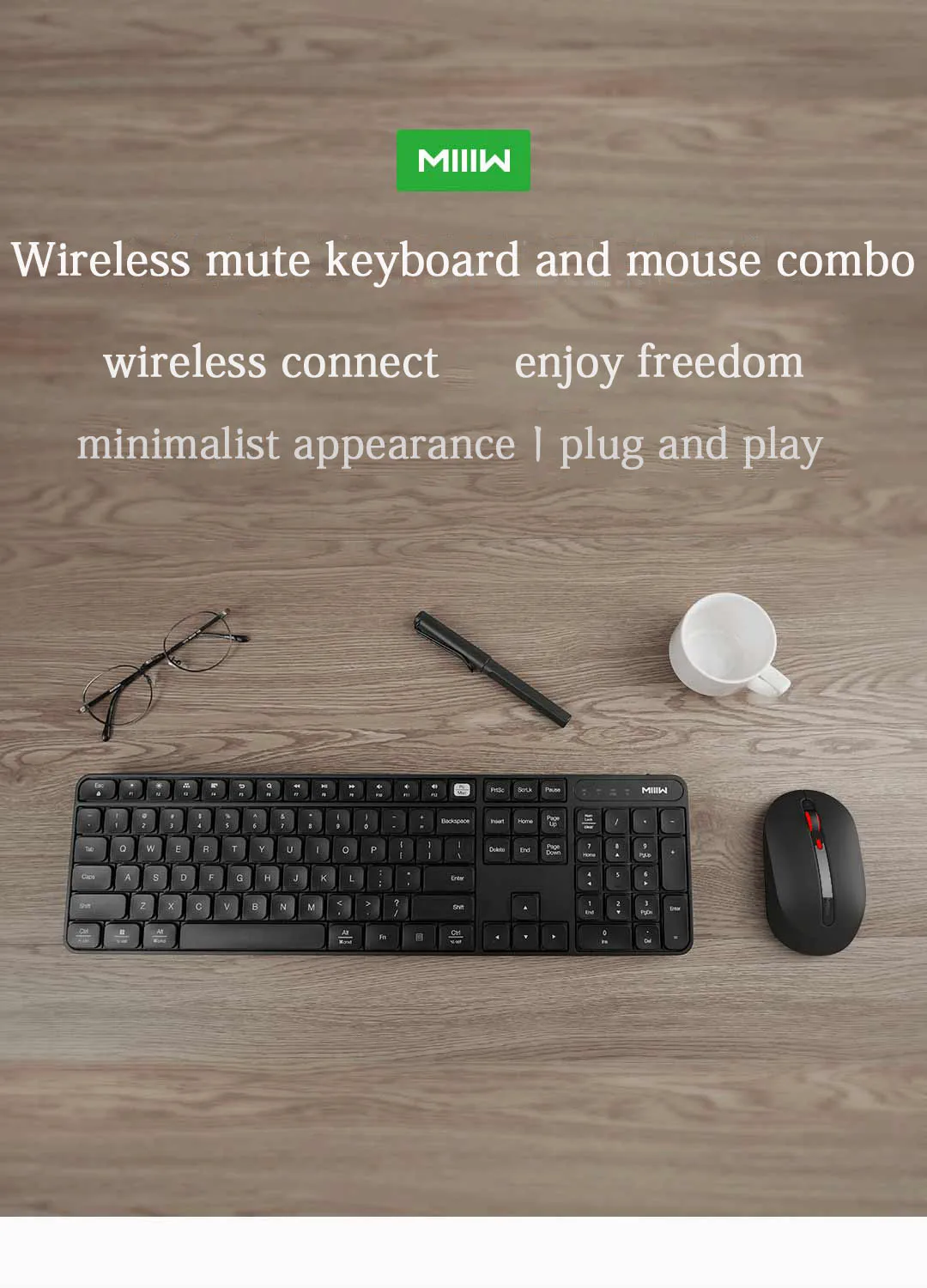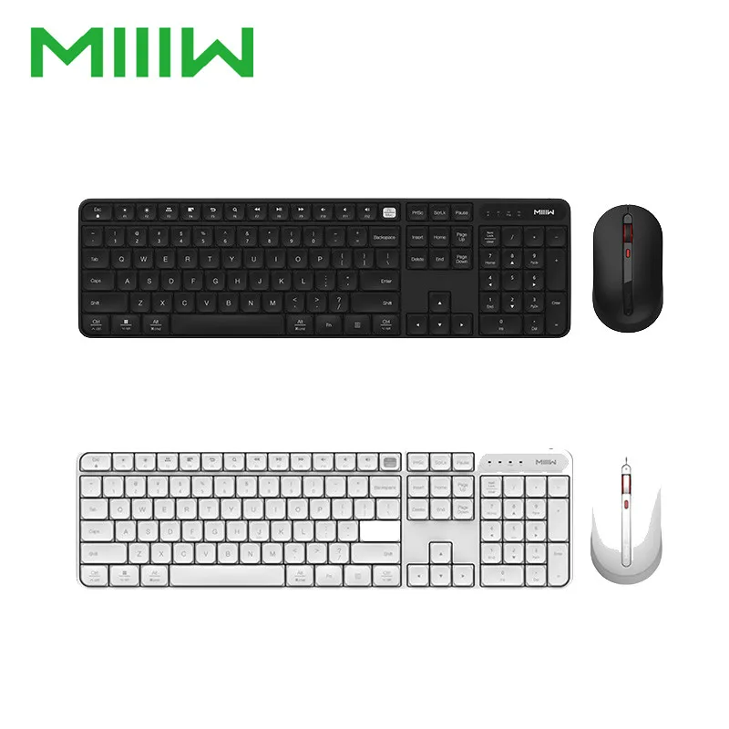 Черная беспроводная клавиатура и мышь MIIIW, только один белый USB-контроль, 104 клавиш, 2,4 ГГц, многосистемная совместимая беспроводная клавиатура