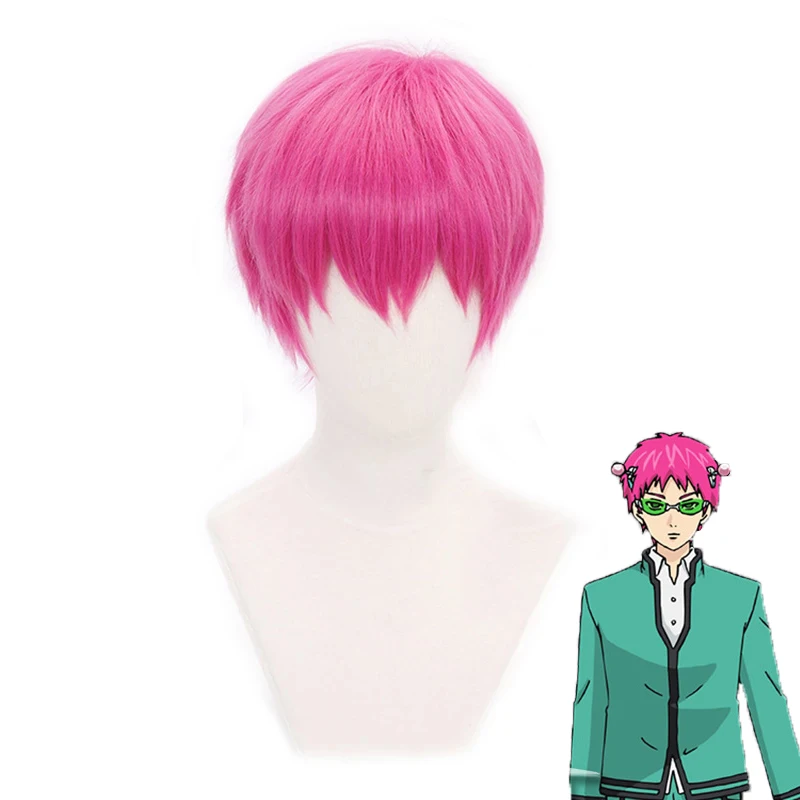 Парик Saiki Kusuo из аниме катастрофическая жизнь Саики к. Для косплея, Короткие Розовые синтетические волосы, парики