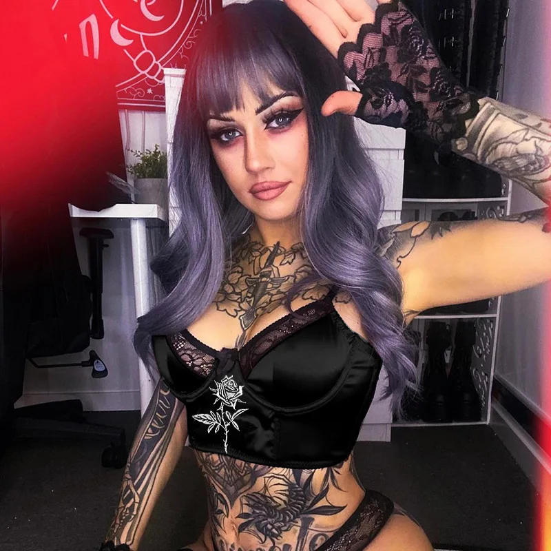 E-girl Готический гранж корсет, короткий топ, винтажный женский чер...