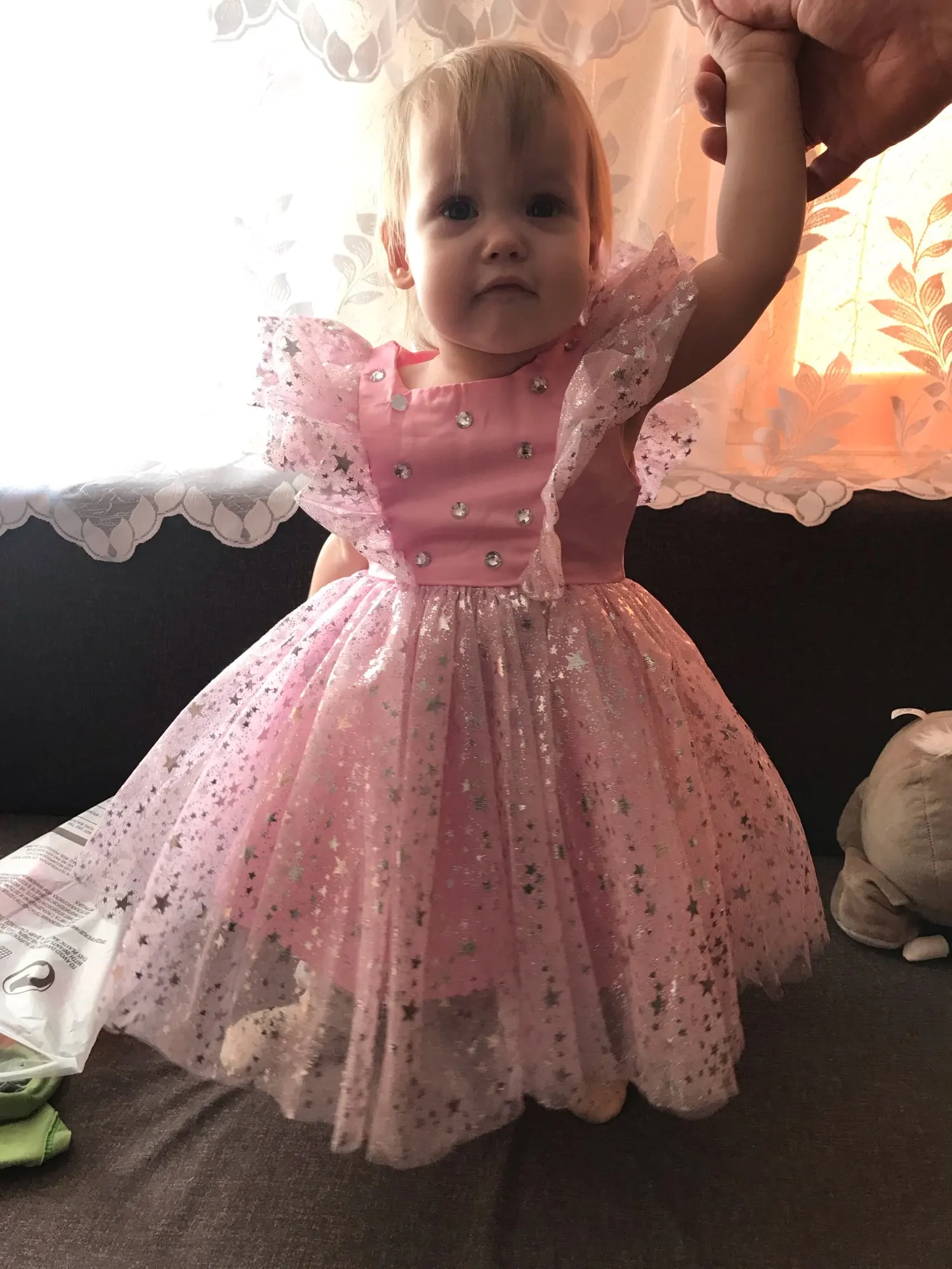 платье хорошее, но цвет на картинке чёрный, а пришёл темно-синий, размер на 2 года подошёл (но мы худые )