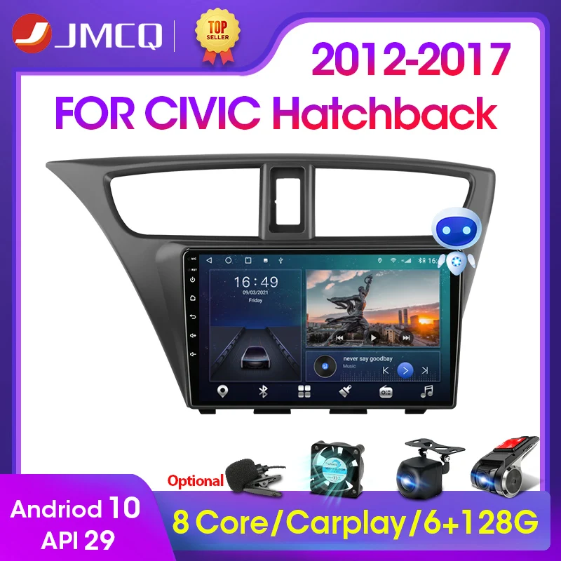Автомагнитола JMCQ, 2 din, Android 10, мультимедийный видеоплеер для Honda Civic Hatchback 2012-2017, Carplay, 2 din, dvd, головное устройство