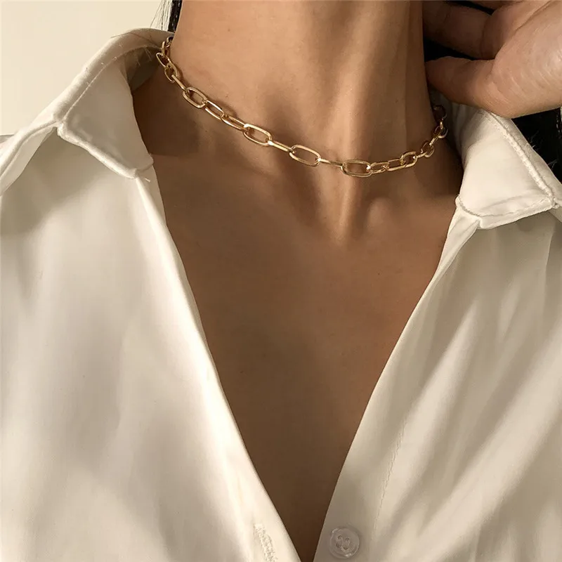 Ожерелье-цепочка с зажимом для бумаги, женское Винтажное колье-чокер из звеньев, ожерелье для женщин, ювелирные изделия в подарок, 2021