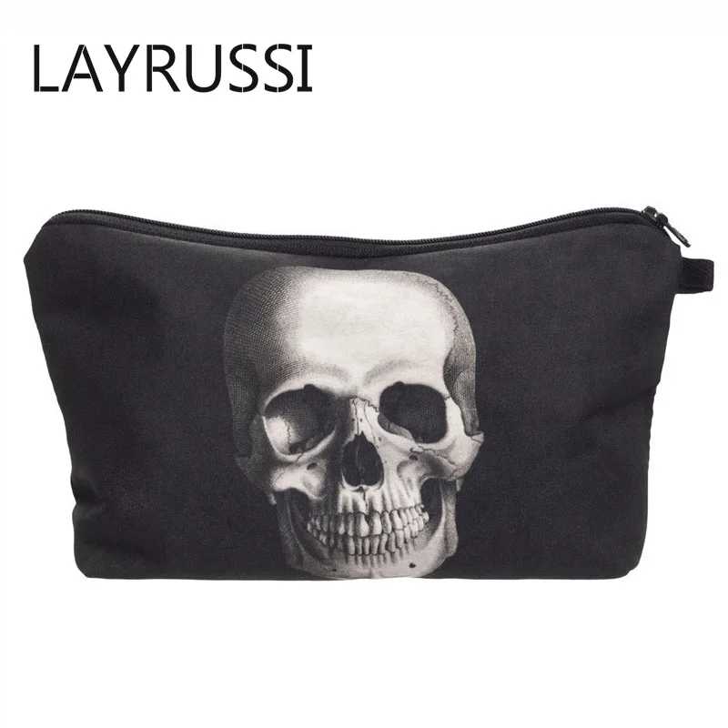 LAYRUSSI косметичка с принтом черепа монстра для женщин и мужчин, косметички, несессер, сумки для мытья, органайзер для вечеринки, макияж