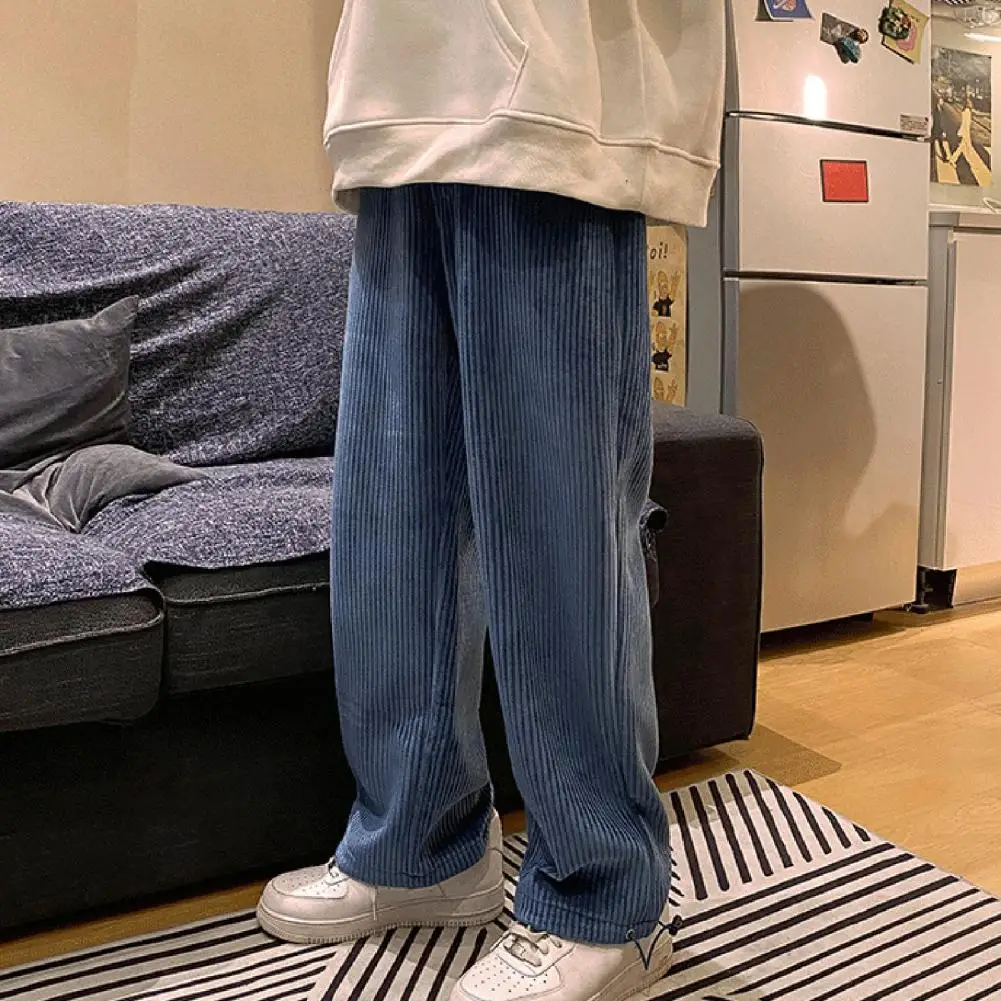 Мужские повседневные Прямые брюки с завязками, женские вельветовые однотонные брюки оверсайз, мужские теплые уличные брюки в Корейском стиле, 2021