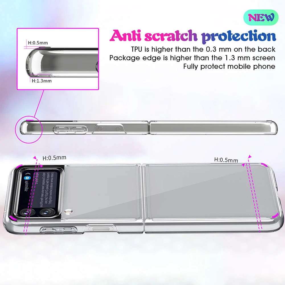 1. Легкий и портативный. Этот чехол для телефона специально сделан для Samsung Galaxy Z Flip3 5G. Использование высококачественного ТПУ + поликарбоната, полые твердые кнопки. Гибкий на ощупь, чувствительный и удобный.