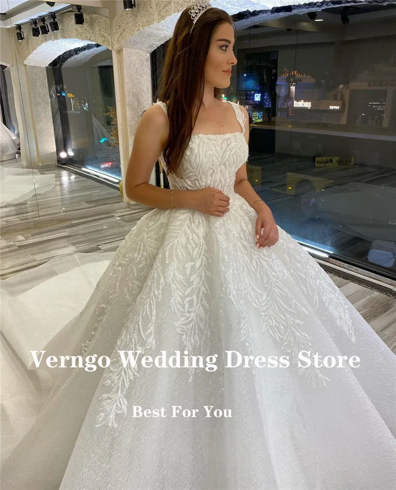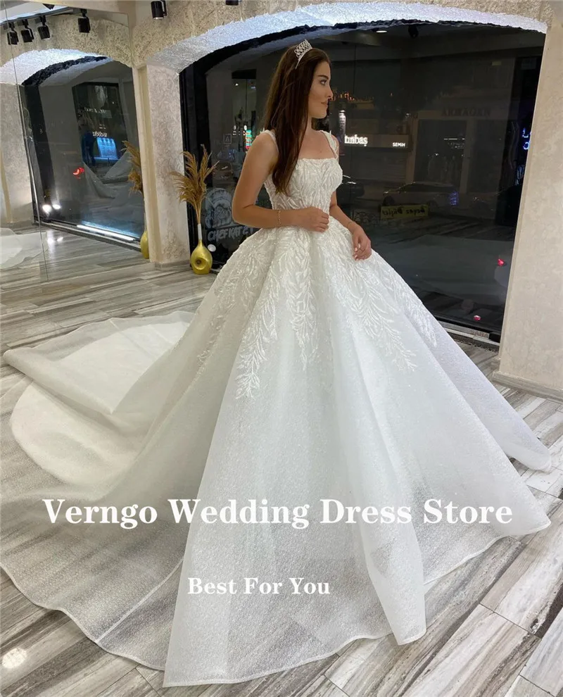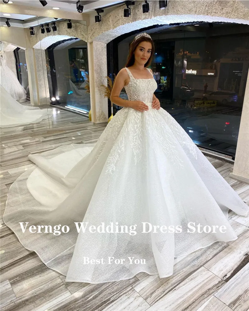 Платье Свадебное блестящее ТРАПЕЦИЕВИДНОЕ на бретельках со шлейфом