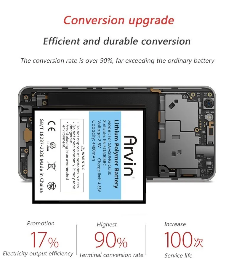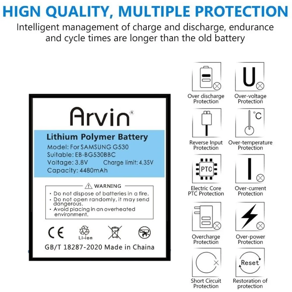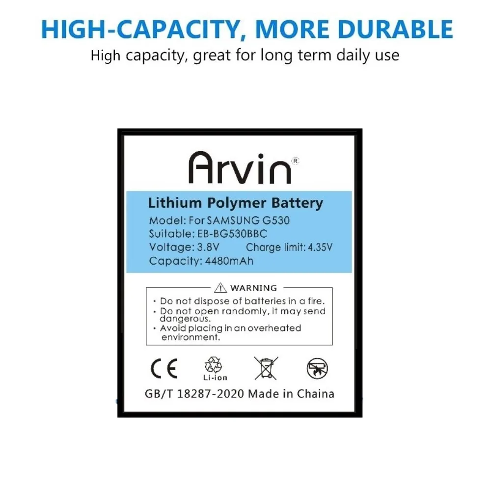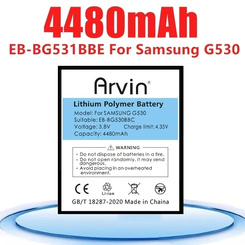 1. Емкость: 4480 мАч 2. Напряжение: 3,8 V 3. Тип: литий-ионный полимерный аккумулятор 4. Совместимость: для SAMSUNG Galaxy Grand Prime J3 2016 G530 G531F G530H G530F G532F J5 2015 батарея 5. Тип батареи: EB-BG530CBC/EB-BG530BBC/EB-BG530BBE/EB-BG530BBU/ EB-BG530CBU/EB-BG530CBE/EB-BG531BBE/EB-BG531BBK Безопасность и окружающая среда: двойные функции защиты. Двойная электрическая плата IC и PCB защищают от разрядки заряда и короткого замыкания. Наша батарея того же размера с оригинальной батареей. Один год гарантии