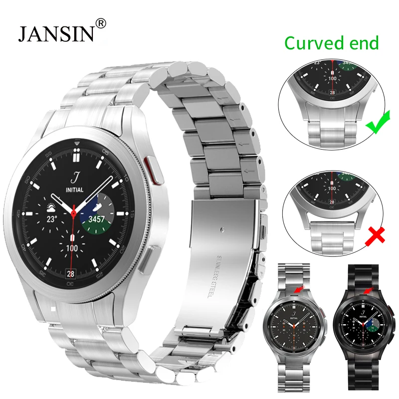Ремешок из нержавеющей стали для Samsung Galaxy Watch 4 44 мм 40 мм, металлический браслет с изогнутым концом для Galaxy Watch 4 Classic 42 мм 46 мм