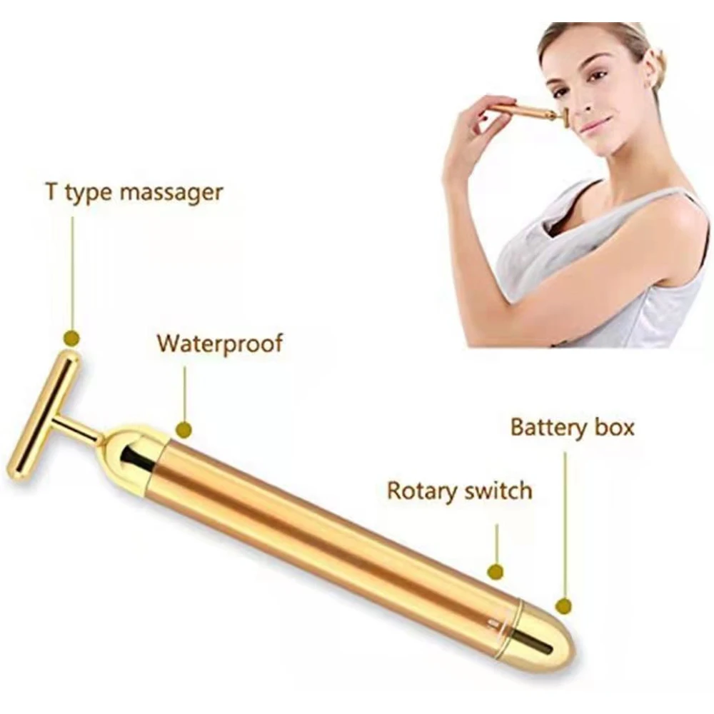 Электрический ролик для лица, вибрирующий Т-образный Массажер для лица, 24 К золота, против морщин, инструмент для подтяжки и подтяжки кожи