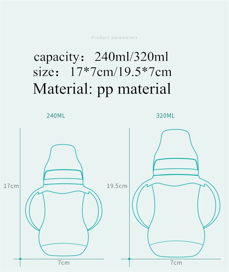 1 шт. 240/320 мл Бутылочка для новорожденных младенческой Дети учатся Кормление питьевой бутылки свободные Детские Калибр PP (не содержит бис-фенол а)