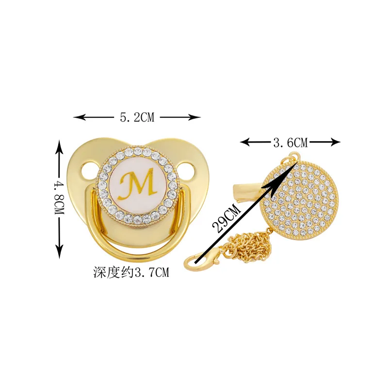 Детская Золотая Соска-пустышка с 26 буквами, чистящая соска, Детская соска, роскошные соски для детей и чехлы, персонализированные соски для малышей