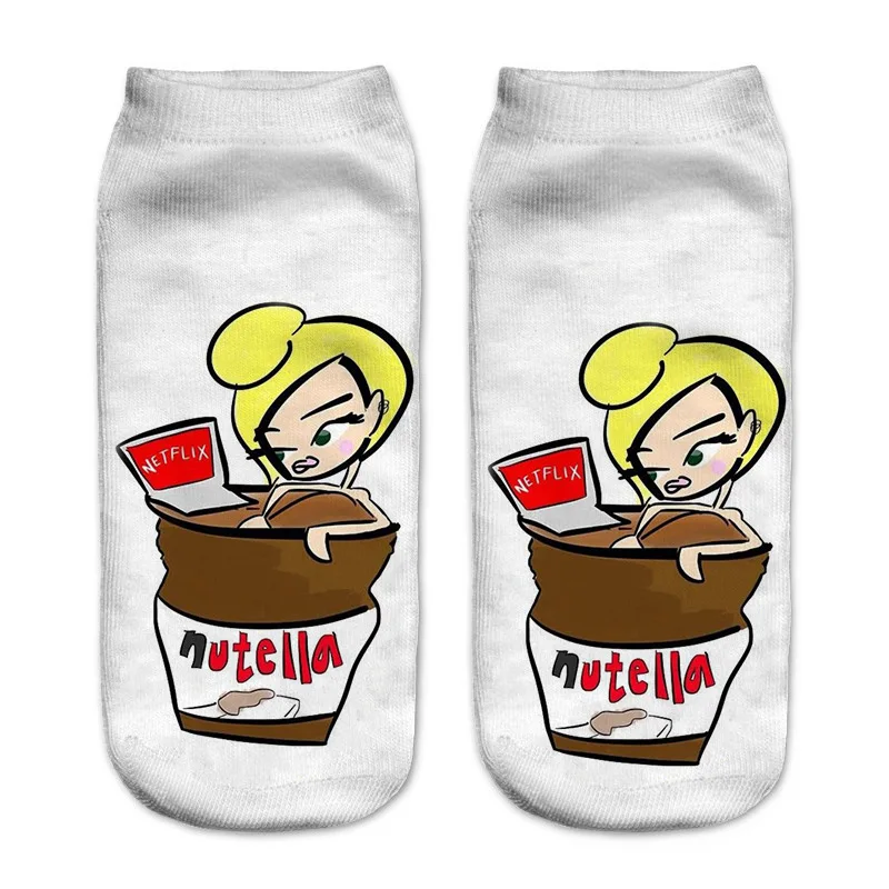 Женские носки счастье хлопок, женские повседневные носки с 3D-принтом, милые невидимые забавные носки до щиколотки для девочек, Короткие чулочно-носочные изделия унисекс