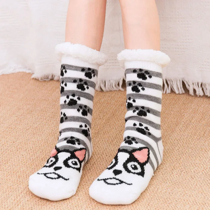 Супер утолщенные пушистые меховые флисовые хлопковые носки Мультяшные животные зимние теплые тапочки носки для домашнего пола для детской кровати милый подарок