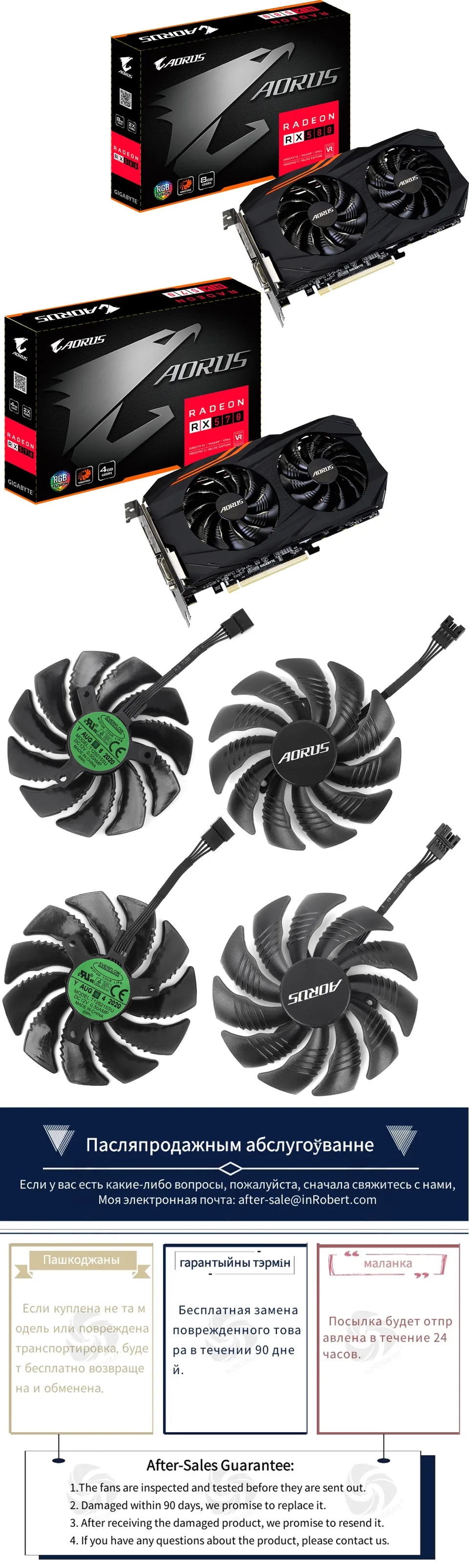 Кулер для видеокарты Gigabyte AORUS Radeon RX 570 580 4G RX570 RX580, 88 мм