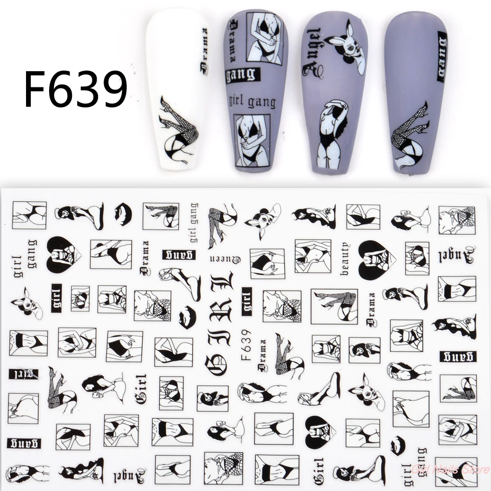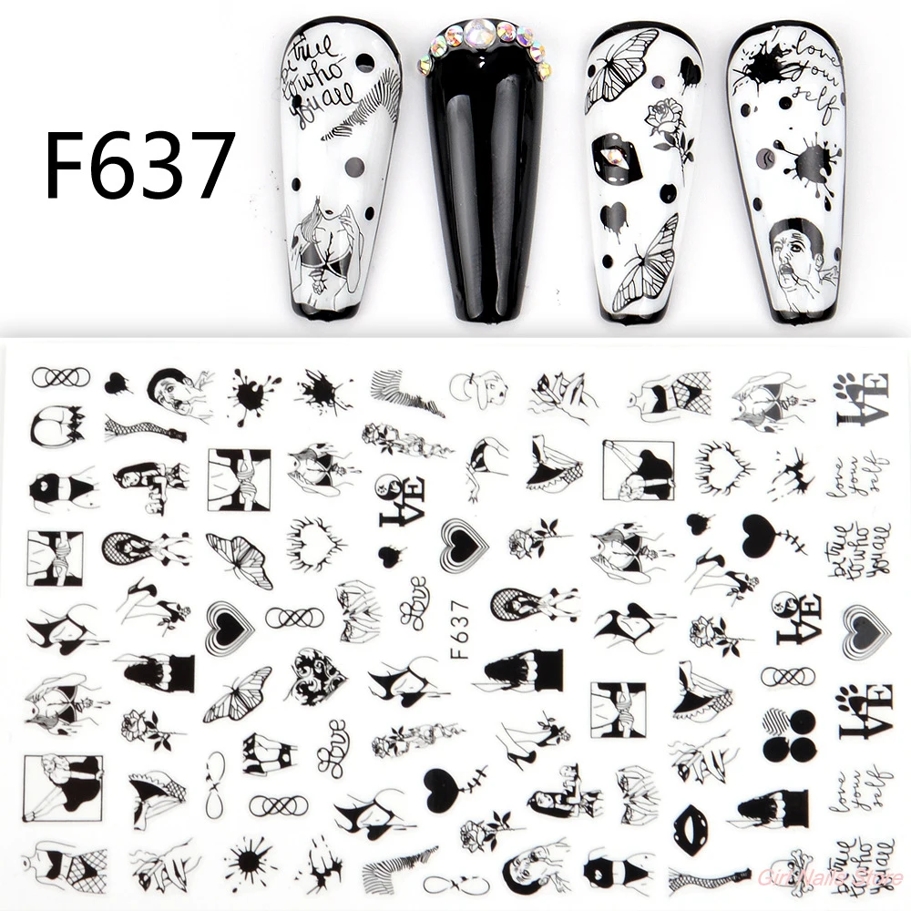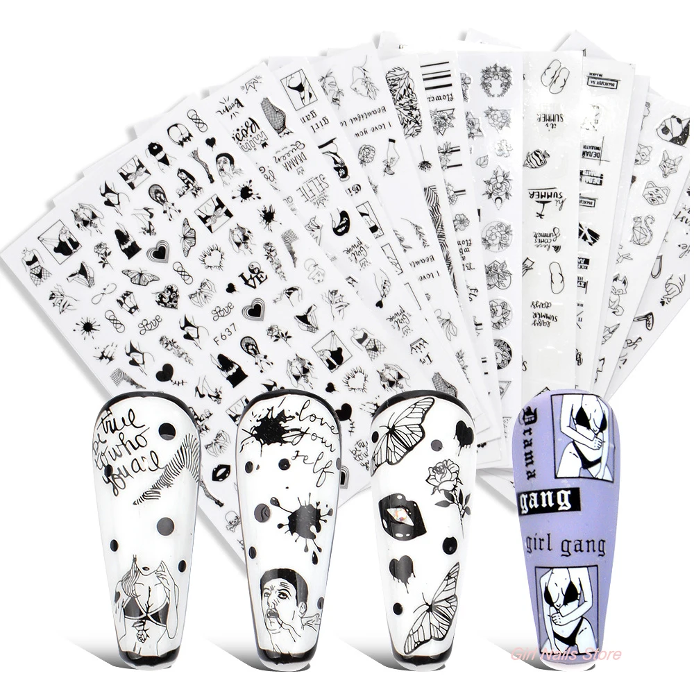 Черно-белая 3D наклейка для ногтей, наклейка с буквами для фотографий, сердце, любовь, дизайн, День Святого Валентина, украшение для ногтей