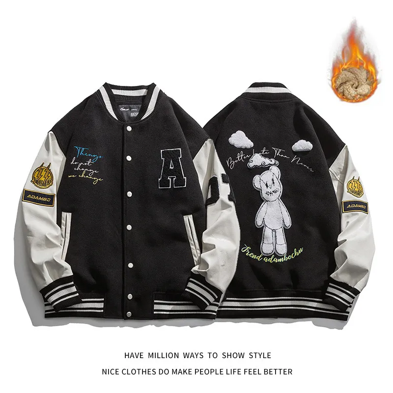 Университетские куртки унисекс в стиле хип-хоп, осенние куртки-бомберы в стиле Харадзюку, уличная одежда с пушистыми буквами, Повседневная бейсбольная форма для пары USD 12,21/Шт/Лот 1