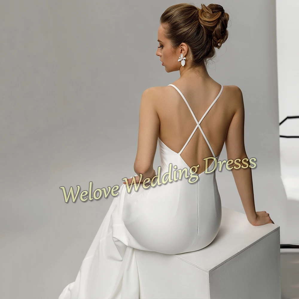 Женское свадебное платье с тонкими бретельками, белое простое платье в пол с открытой спиной и шлейфом, модель 2022 по индивидуальному заказу