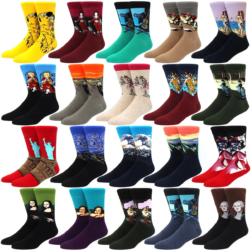Носки мужские хлопковые с изображением картины Ван Гога и Иисуса