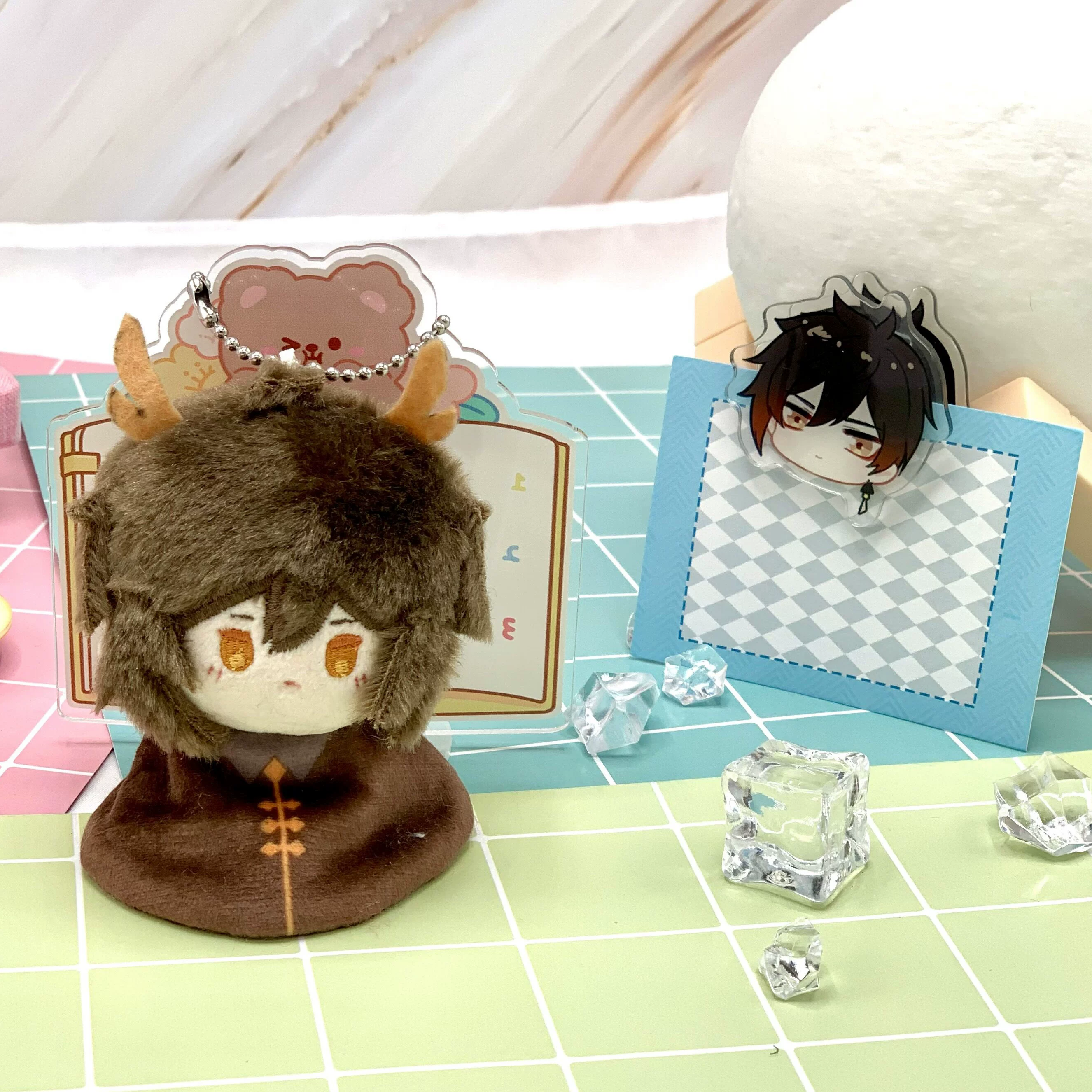 Аниме Genshin Impact Zhongli Xiao, уменьшение клетки, тартаглия, симпатичная подвеска, плюшевая Кла, сумка, брелок, акриловый зажим для нот, подарок