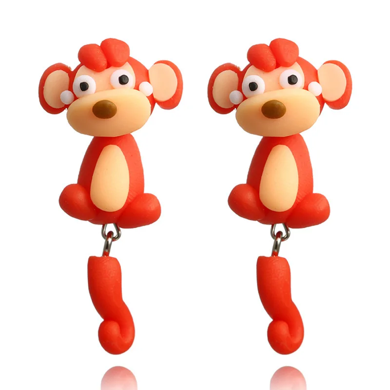 Необычные индивидуальные мягкие серьги из глины с животными, Мультя...