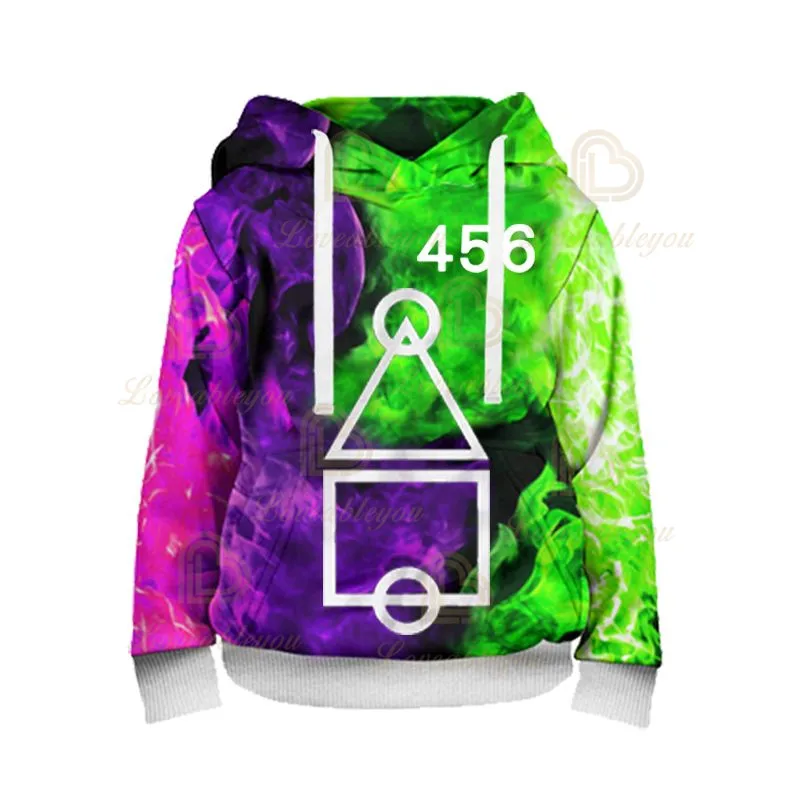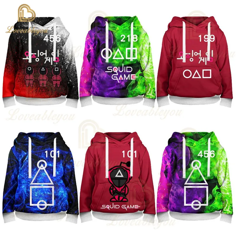 Костюм для мальчиков и девочек 3D, одежда для косплея, корейский свитшот из фильма игра кальмар 456, топы для подростков, детская игра