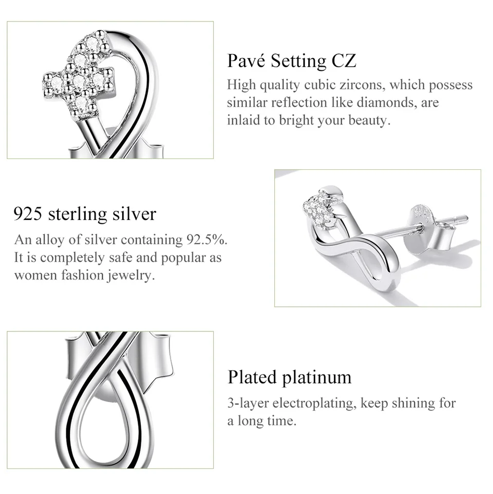 ❤[Размер] 1,4*0,7 см❤Вес: 1,9 г❤【Quantity】 1 пара❤【Материал】 100% Стерлинговое Серебро 925 пробы + AAAA циркон + Платиновое покрытие❤【Style】классический, элегантный, простой❤【Casuon】вечеринка, дата, шоппинг, подиум, свадьба...❤【Description】The Платиновый символ бесконечности имеет нежную и блестящую текстуру, уголок которой вымощен цирконом, изысканным и сверкающим, добавляя образу моды.