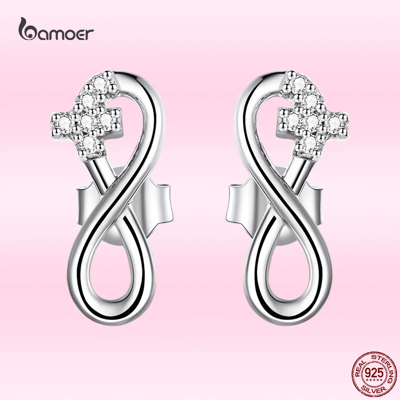 Женские серьги-гвоздики Bamoer из настоящего серебра 925 пробы с не...