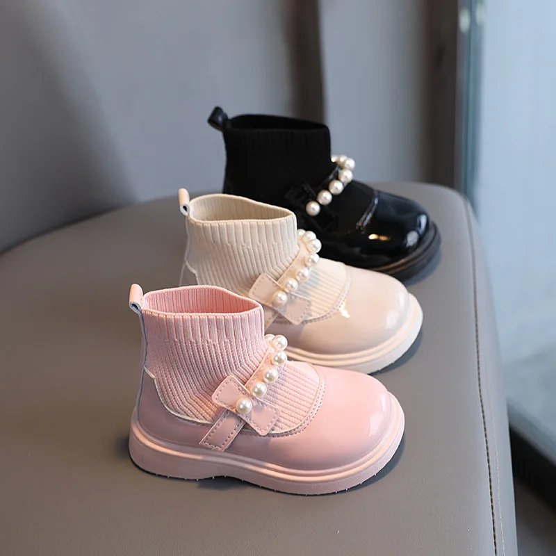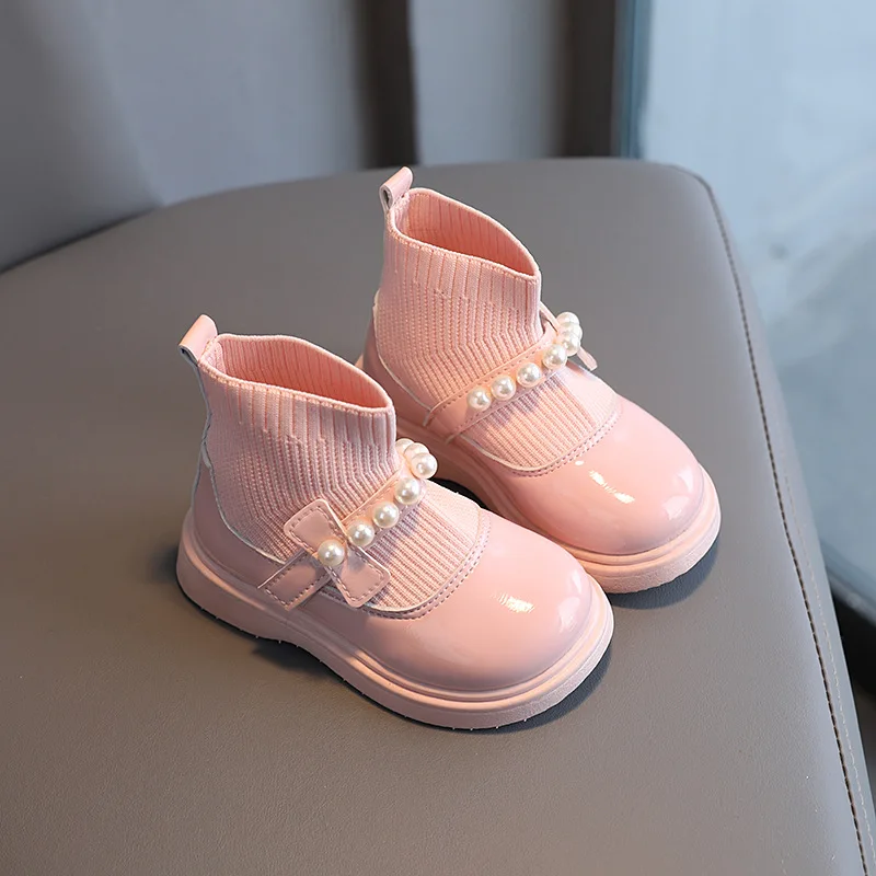 Ботинки детские Нескользящие из лакированной кожи, с жемчугом и бантом, размеры 21-30