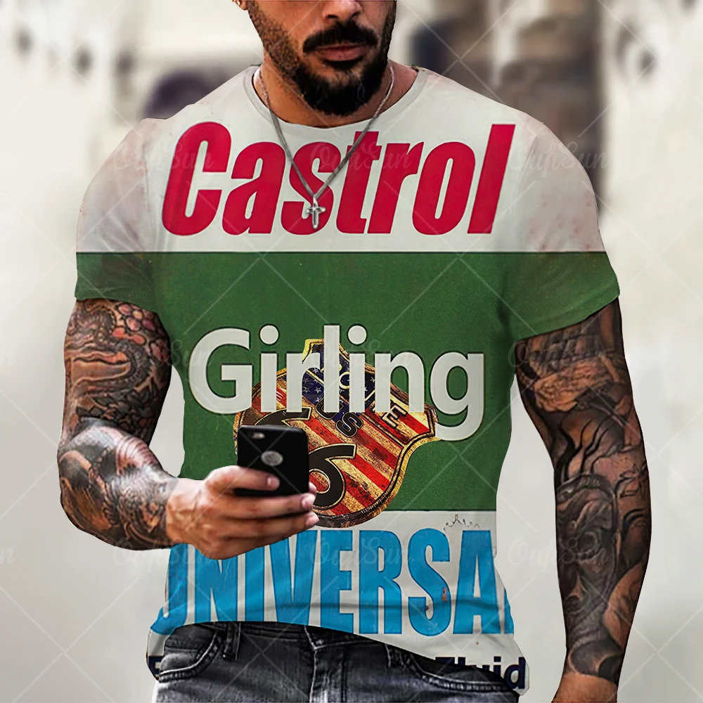 Мужская Винтажная Футболка CASTROL, Классическая Ретро футболка с п...