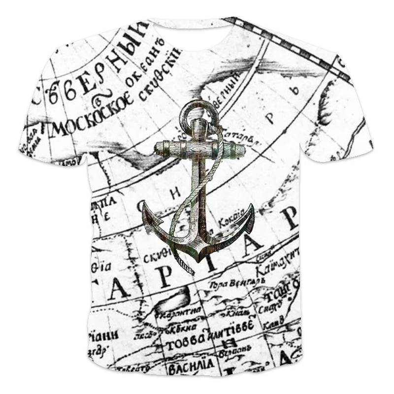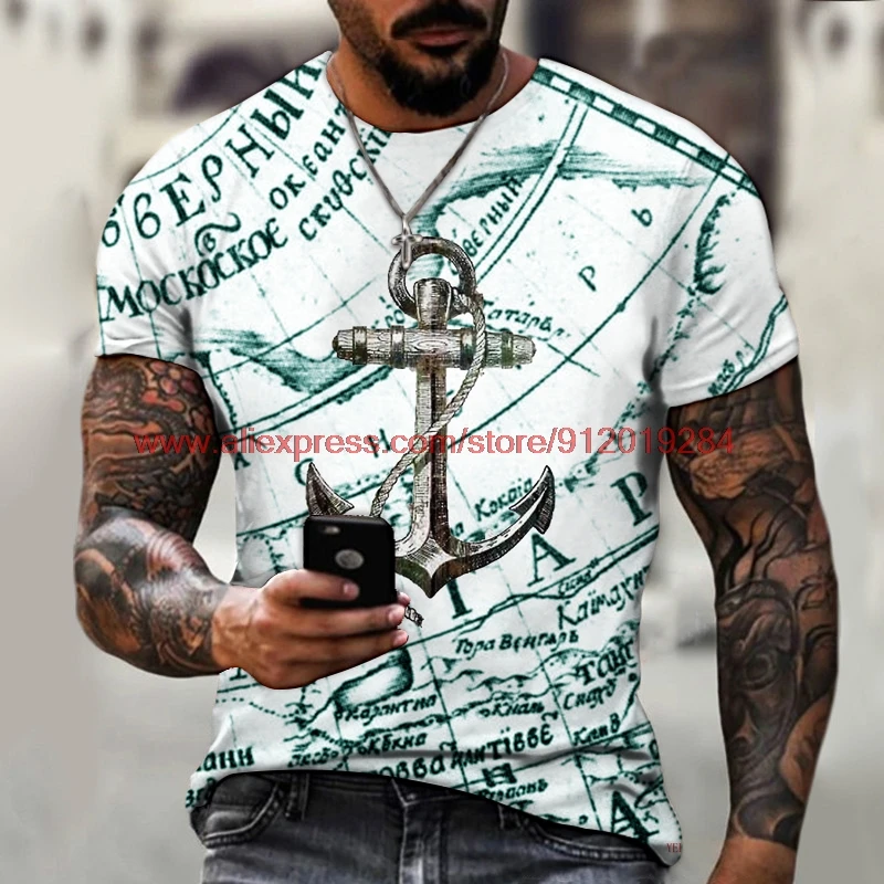 Летняя мужская футболка, уличная мода, с морским компасом, Женская ...