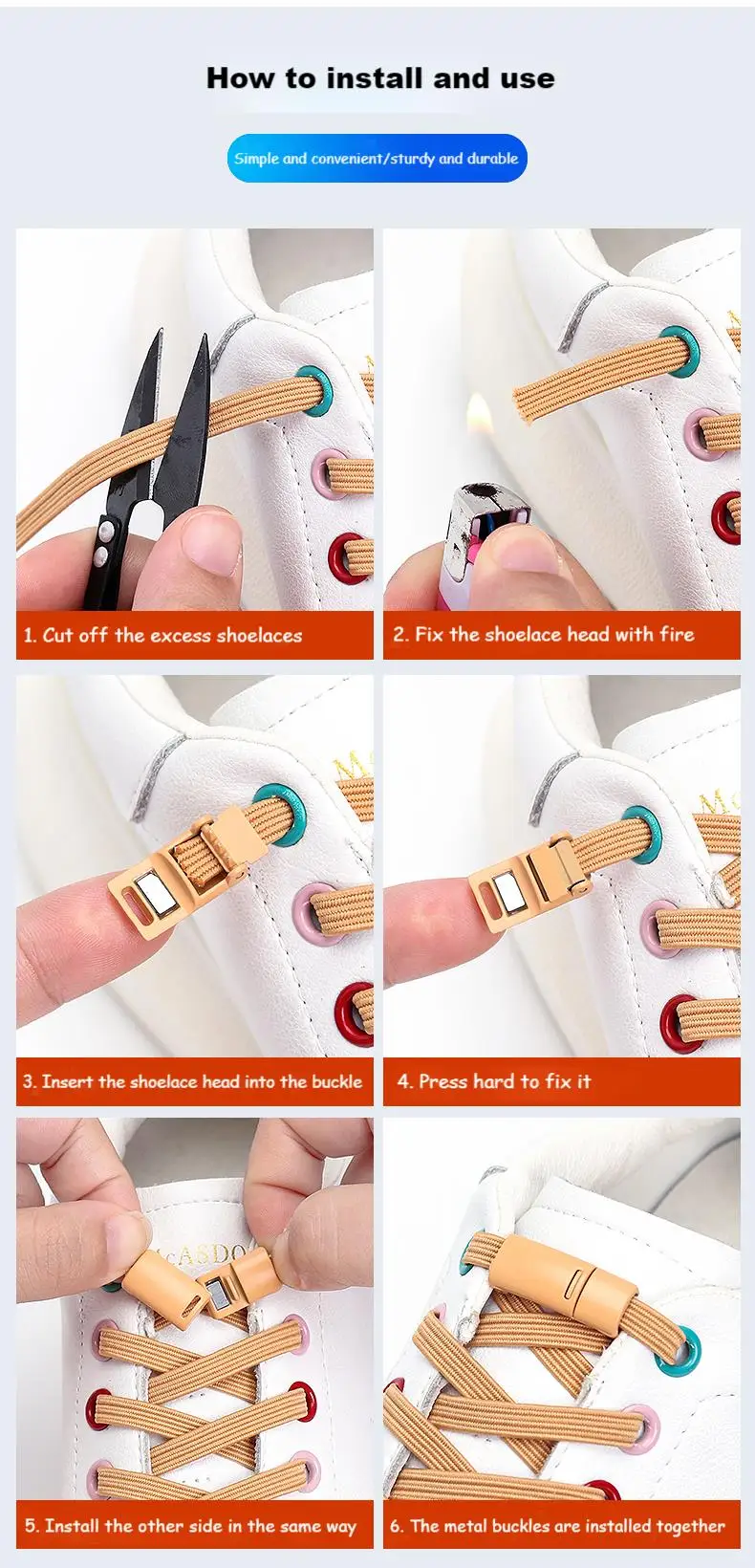 Простая установка: один размер подходит всем (детям и взрослым), быстро устанавливается, прост в использовании. Каждая пара подходит для шнуровки 1 пары обуви. Простые инструкции по установке.