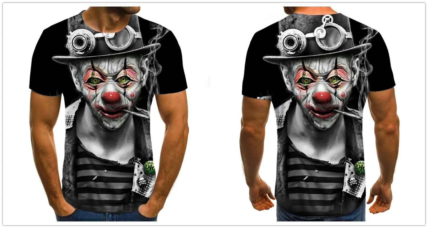 Новый 3D клоун Графические футболки дьявол тема для мужчин футболка...