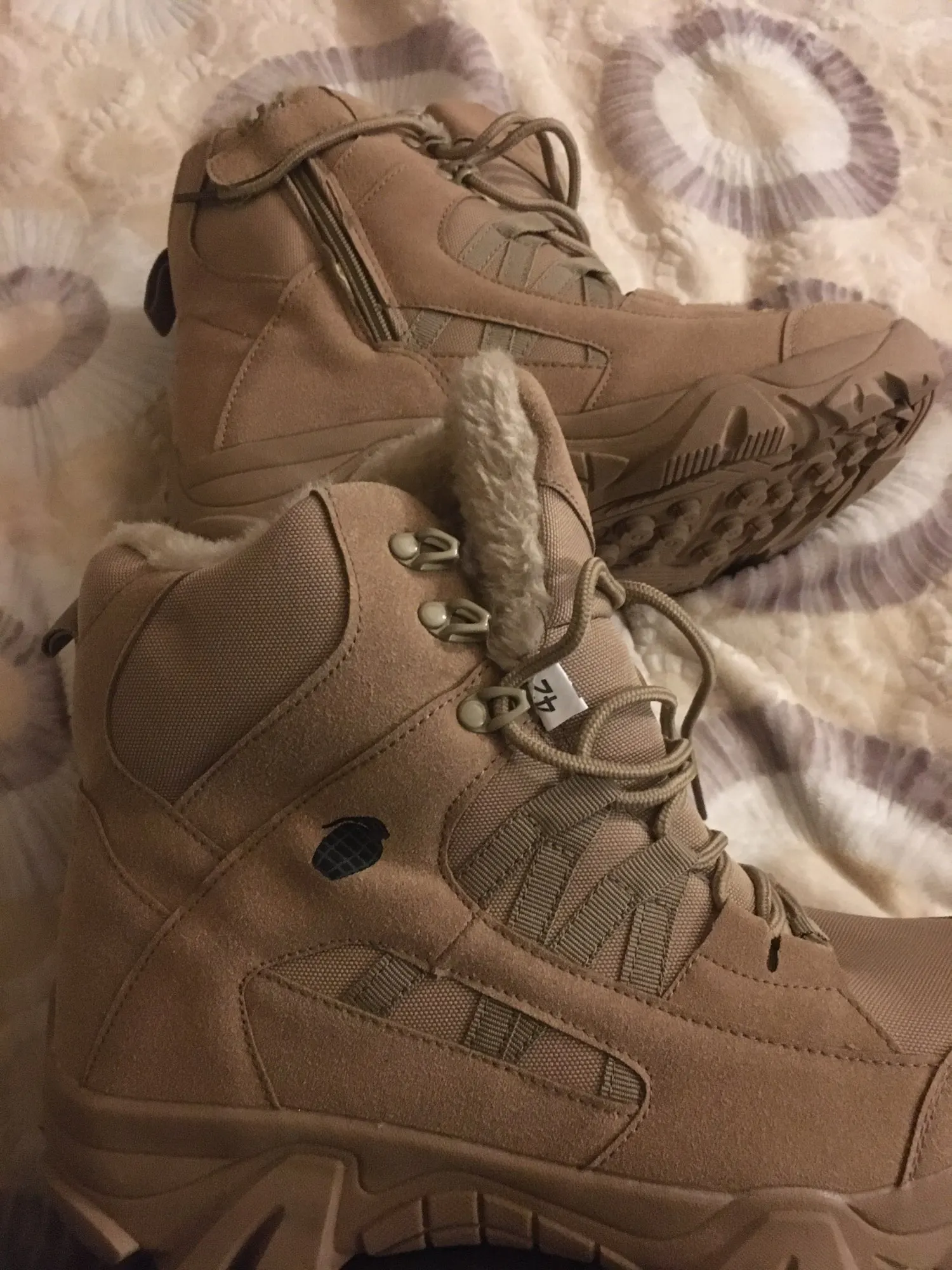 Мужские армейские ботинки из натуральной кожи, с мехом