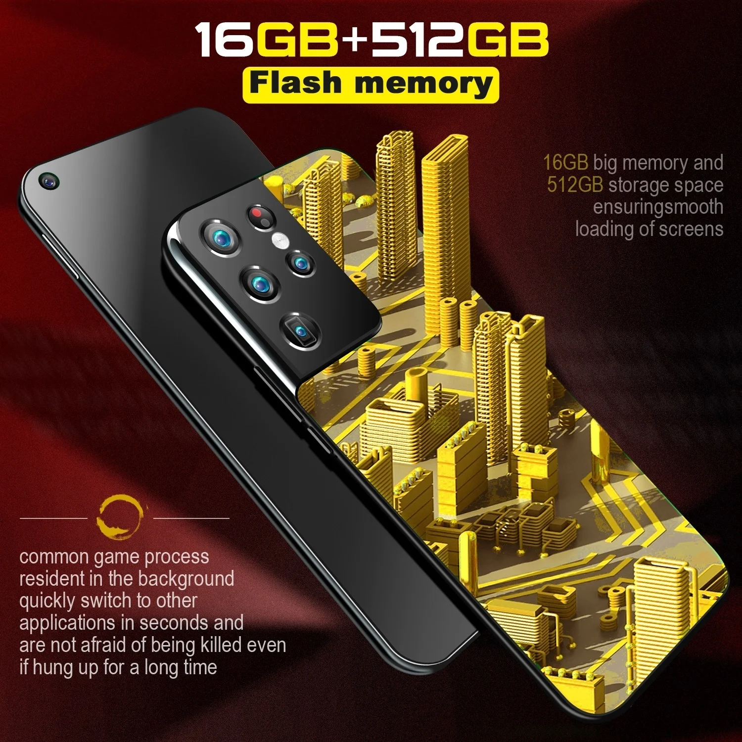 Новый ультрасовременный смартфон S21, телефон с большим экраном Android, смартфоны с двумя Sim-картами
