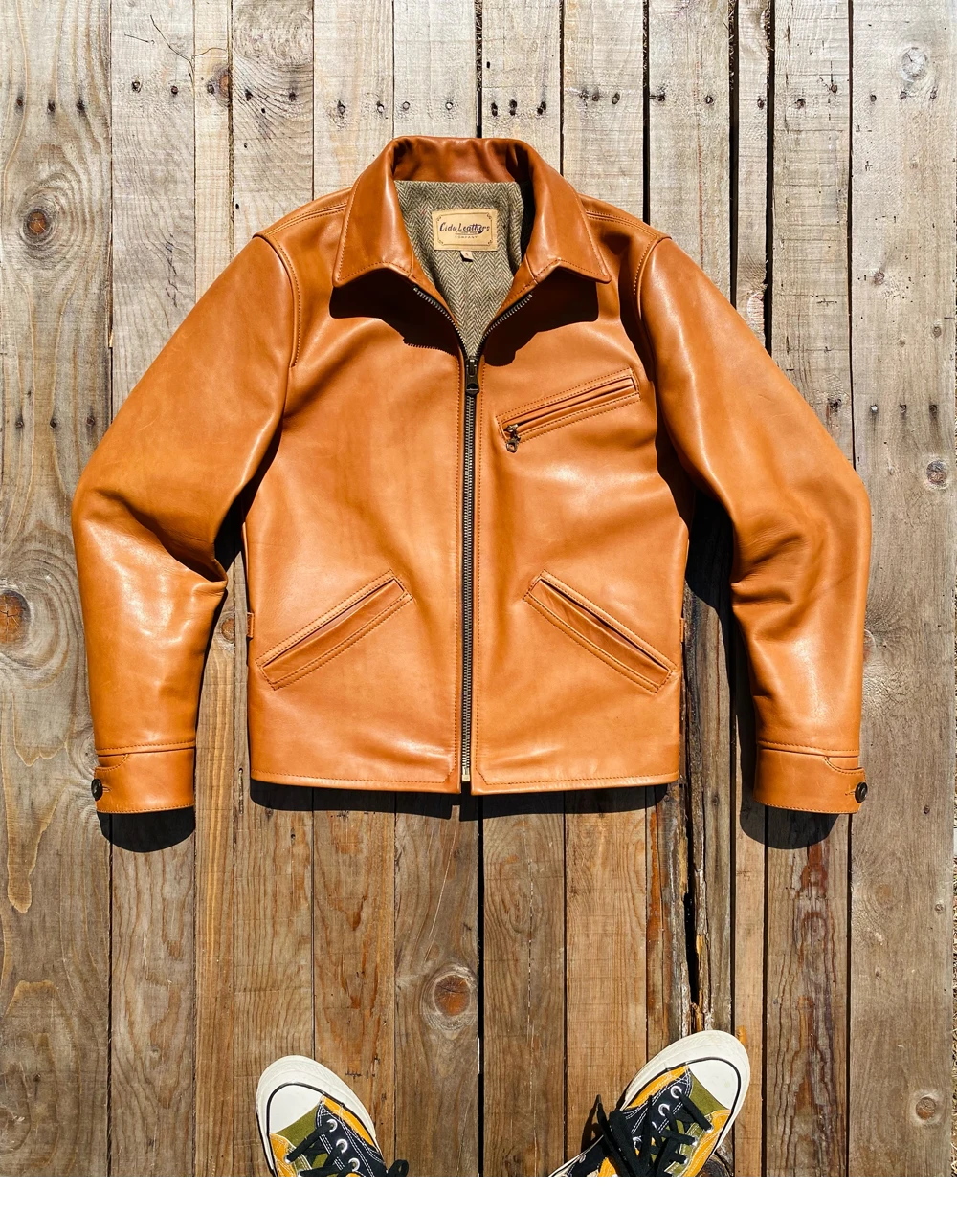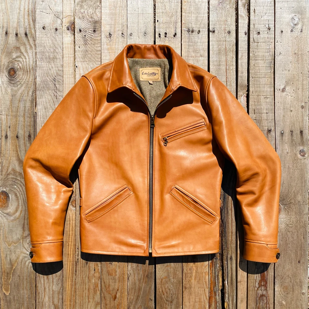 Мужская приталенная винтажная куртка CDJ-133 Cidu азиатского размера из натуральной итальянской тосканной коровьей кожи