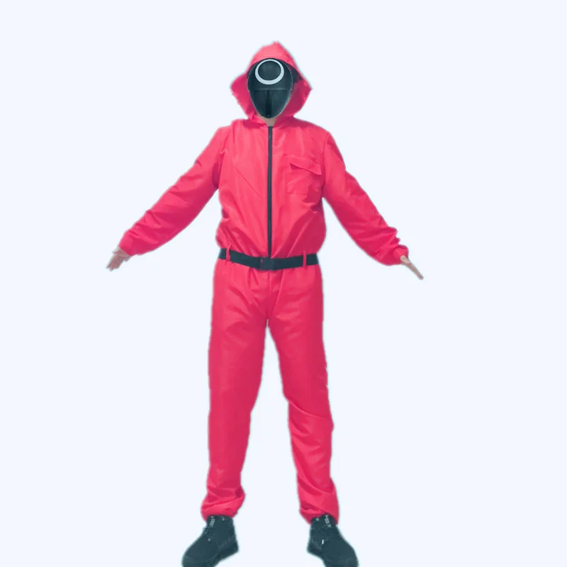 Красный комбинезон из игры кальмар, костюмы для косплея, Круглый, шестиугольный, треугольный, квадратный, маска, ремень, аксессуары для Хэллоуина