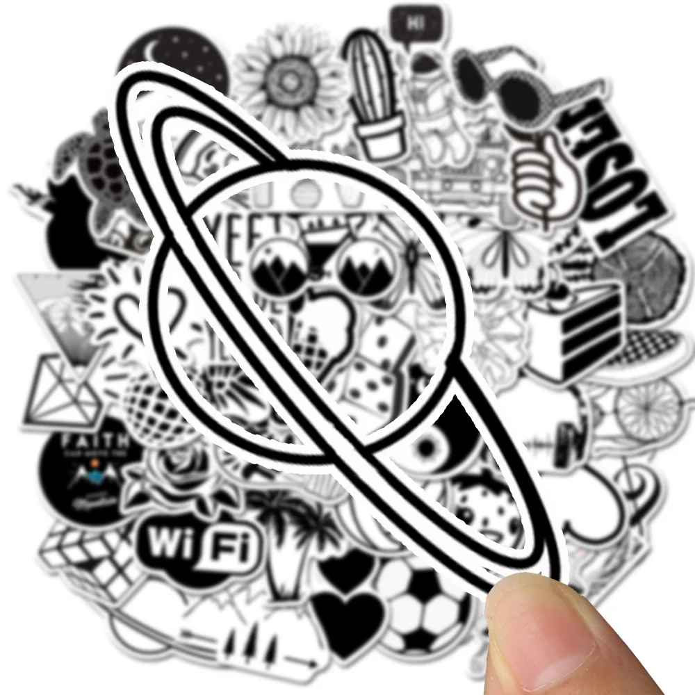 103050 шт. черно-белая серия мультяшный Граффити Ноутбук гитара водяная чашка скейтборд шлем велосипед ПВХ стикер оптовая продажа
