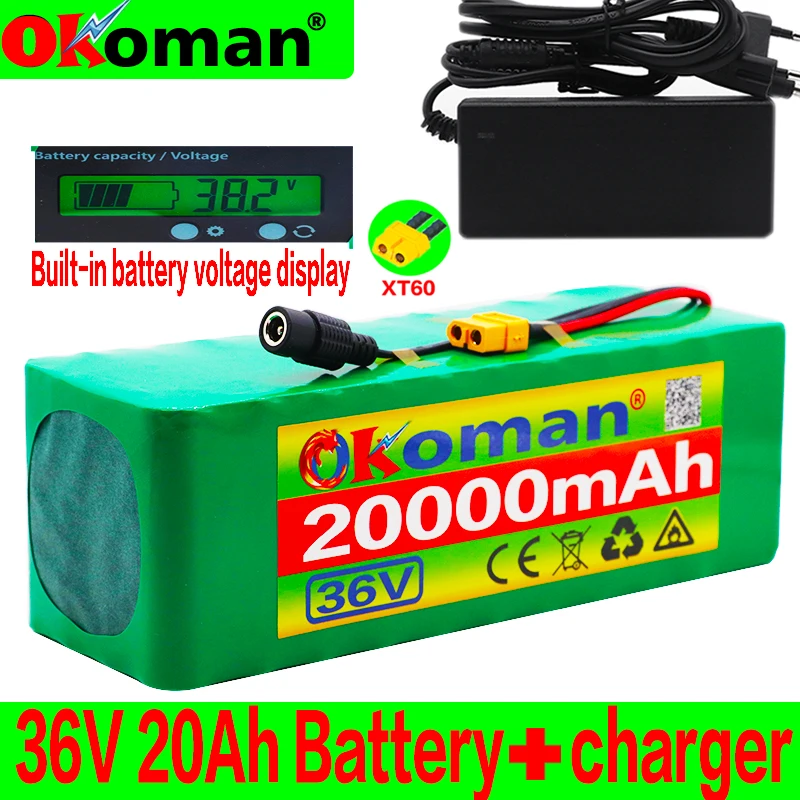 Аккумулятор для электровелосипеда 36 в 20 Ач, батарея для электровелосипеда 20 А, аккумулятор 36 В с аккумулятором для электровелосипеда, штепсельная вилка XT60 с индикатором емкости и зарядным устройством
