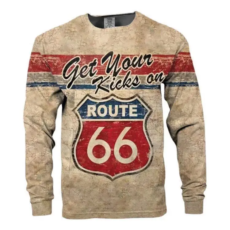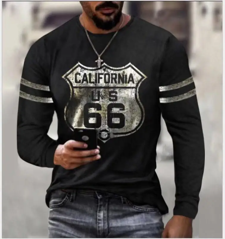 Уличный Свободный пуловер 66 Highway MOTO с длинным рукавом и принтом в стиле хип-хоп, топы, Новинка осени 2021, Мужская модная футболка с принтом
