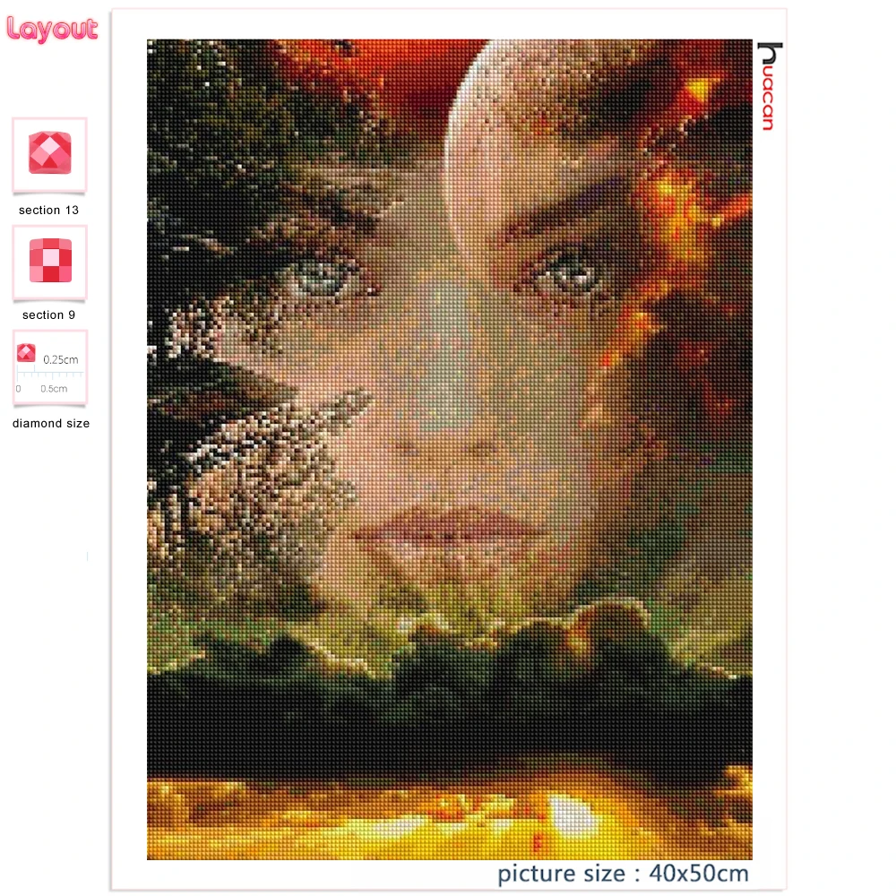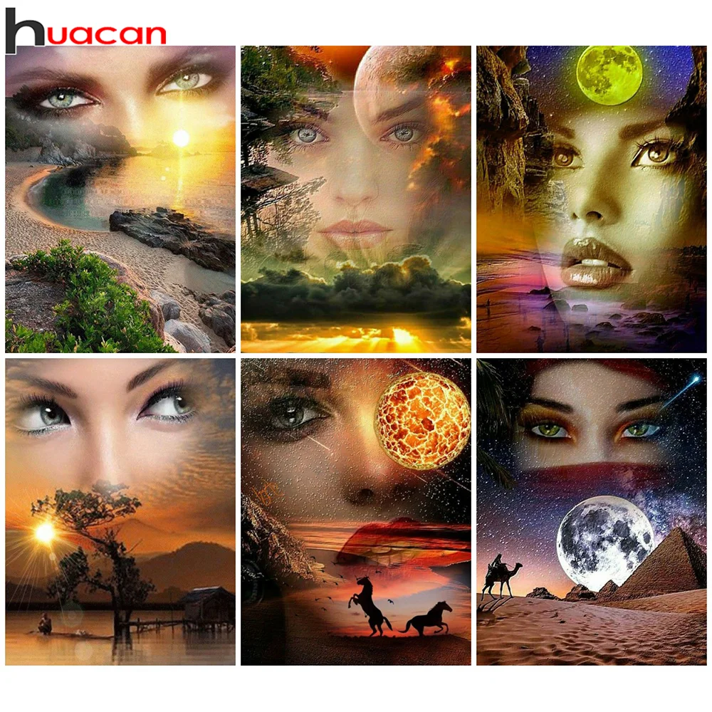 Алмазная 5d картина Huacan, Женский пейзаж, полноразмернаякруглая вышивка, мозаика для девочек, закат, ландшафт, домашний декор