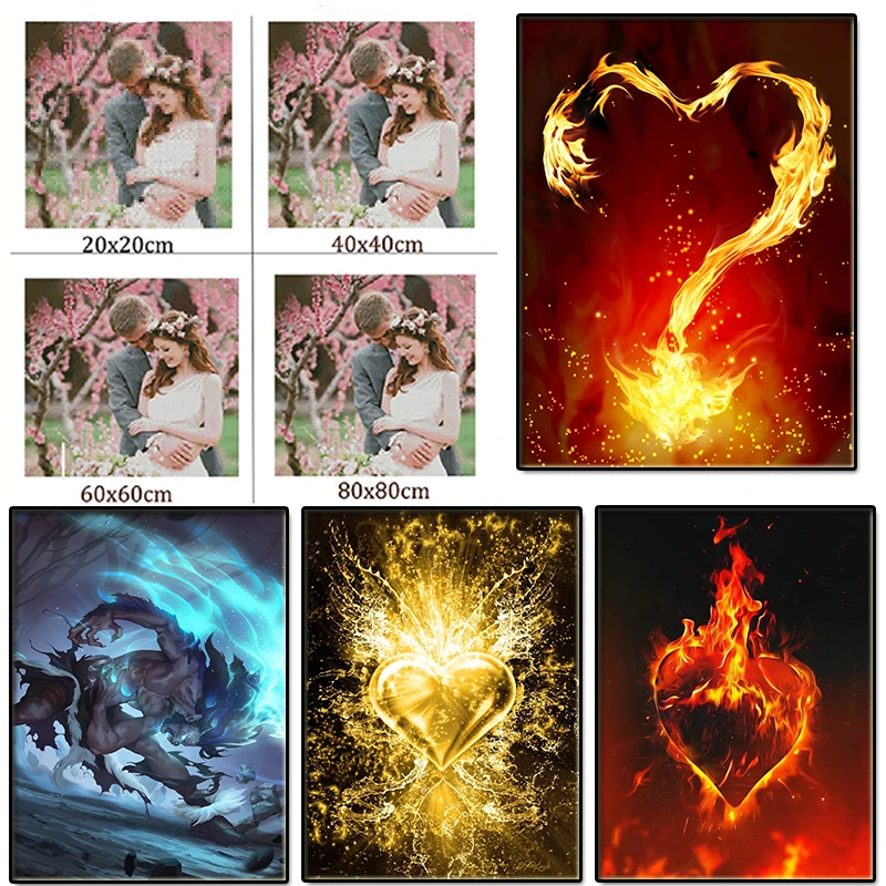 Алмазная живопись сделай сам, аниме, простое живопись в форме сердца, огненное сердцебиение, квадратный алмаз, Круглый Алмазный крест, мозаика, украшение для дома icon star icon star icon star icon star icon star