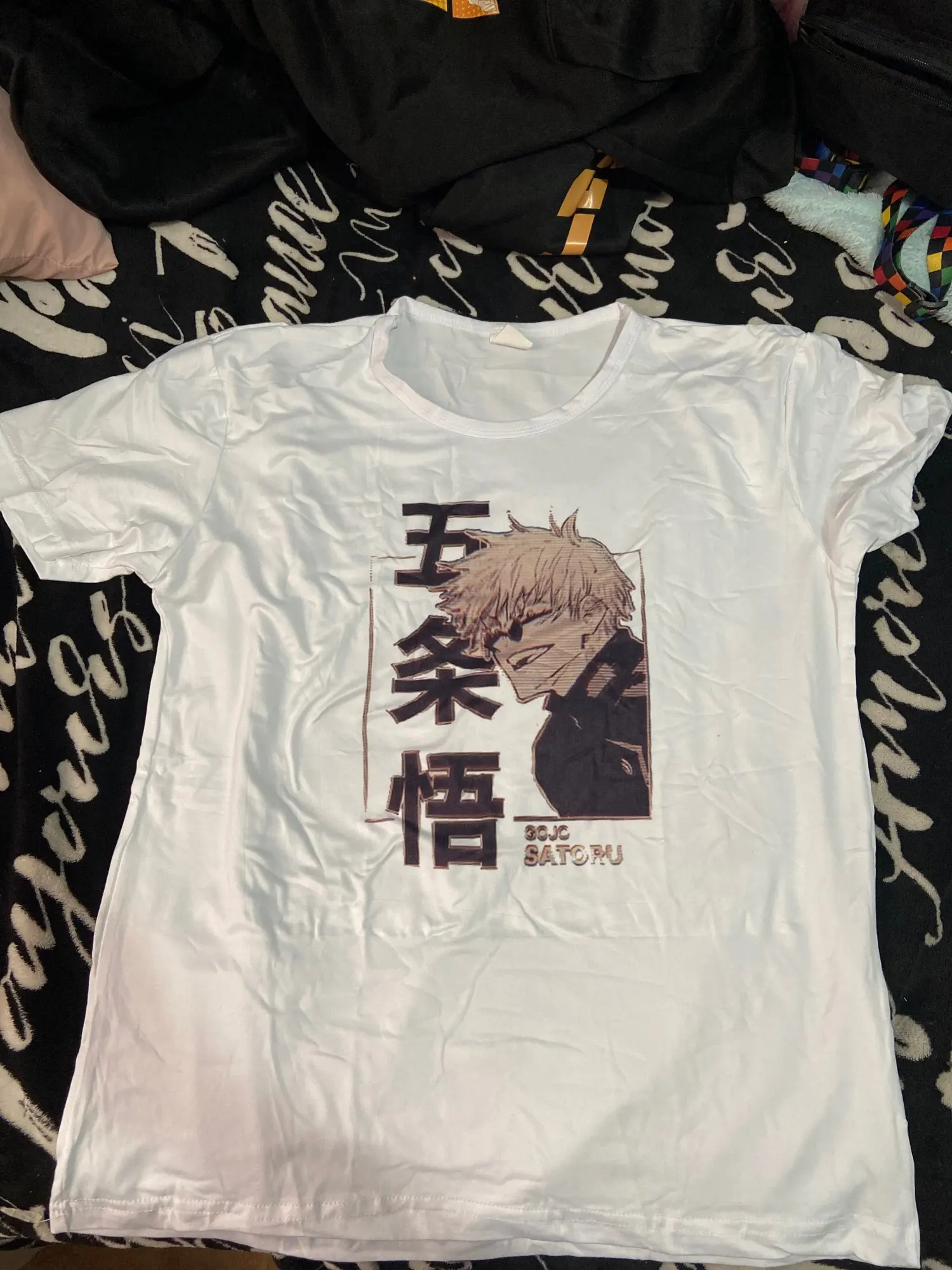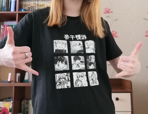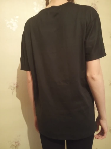 Футболка хорошая) Заказывала xxl В принципе, подходит) Без неприятного запаха пришла, чему я была удивлена :0 Принт хороший, проризиненный Покупкой довольна~ Сам заказ пришёл где-то за 11 в Московскую область