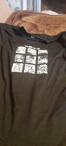 la tela es suave, la imagen es más un poco más amarilla, y borrosa. Respecto a las tallas; usualmente uso la talla S o M pero está vez pedí una XL por si las tallas pequeñas, pero una L o M hubiese estado mejor. Sin embargo, por lo demás, llegó bien, sin olor, y en el tiempo estimado de entrega :)