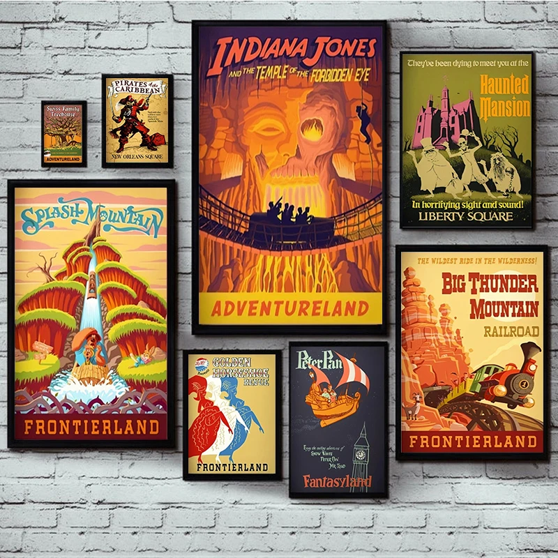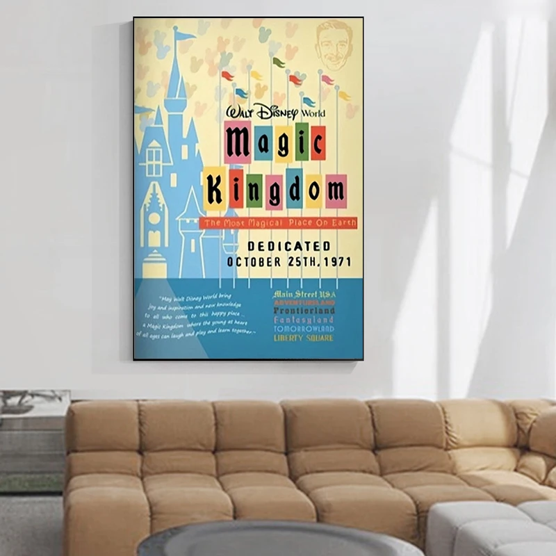 Винтажный постер с аттракционами Диснея, для детской спальни, Уолта, Диснея, фантастика, постер на холсте, настенное искусство, домашний декор