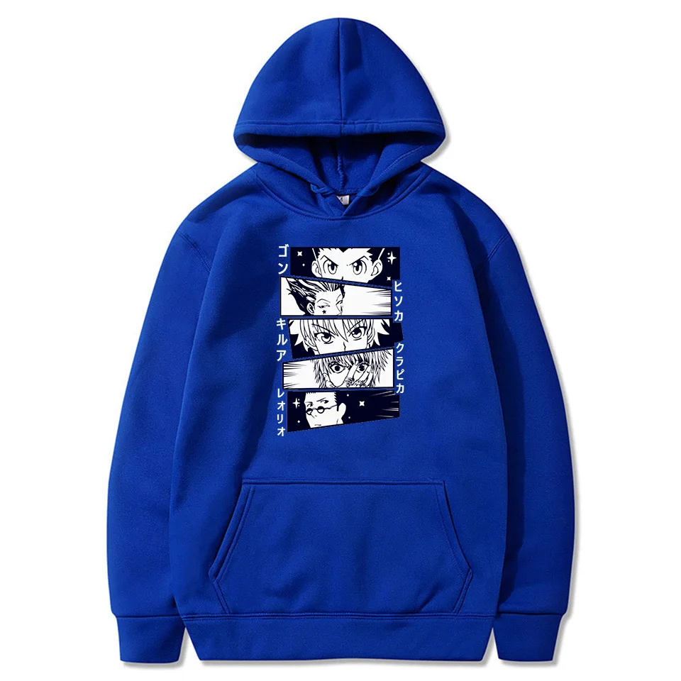 Японские толстовки с капюшоном Hunter x Hunter для мужчин и женщин, мультяшный Свободный свитшот в стиле Харадзюку, хип-хоп, флисовые теплые хлопковые топы с длинным рукавом