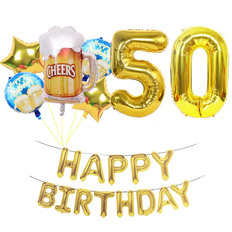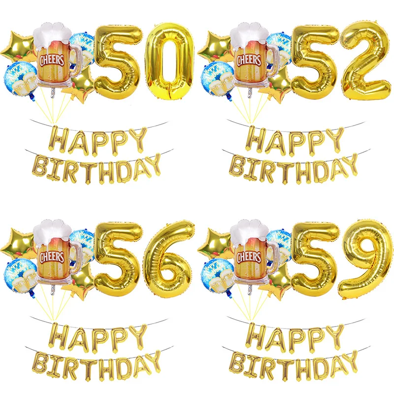 Воздушные шары на день рождения 20 шт., кружка для пива, винного бокала, с цифрами, баннеры, украшения для вечеринки, 51 52 53 54 55 56 57 58 59 лет