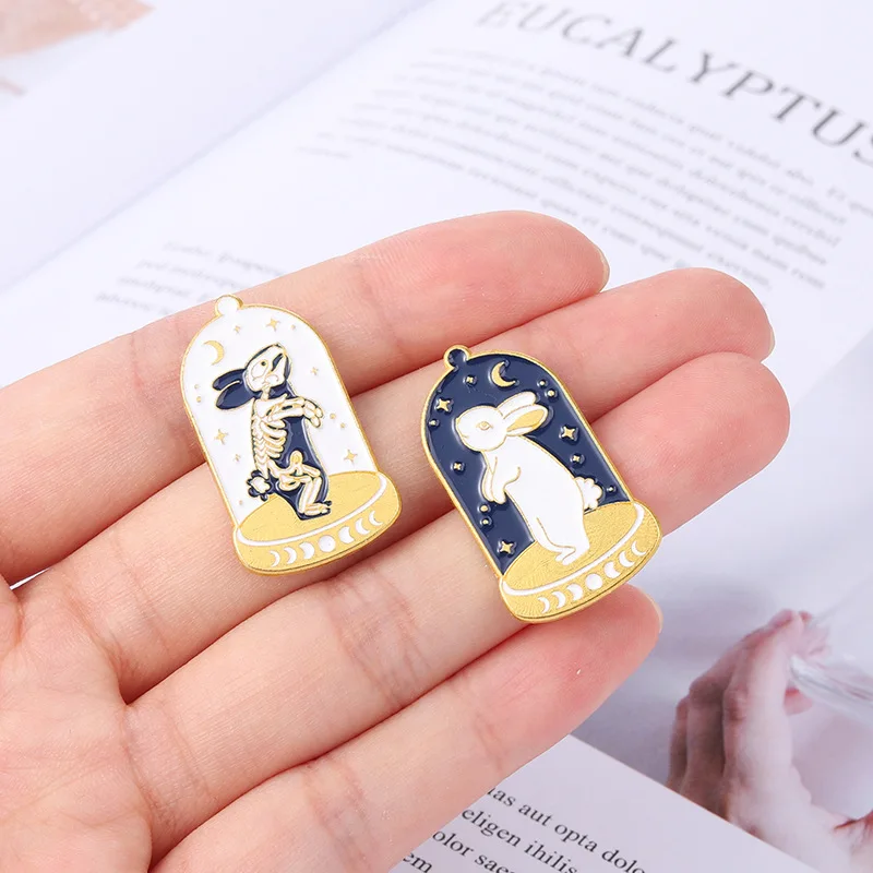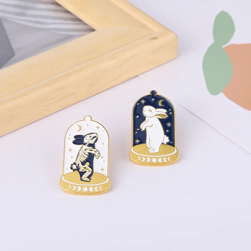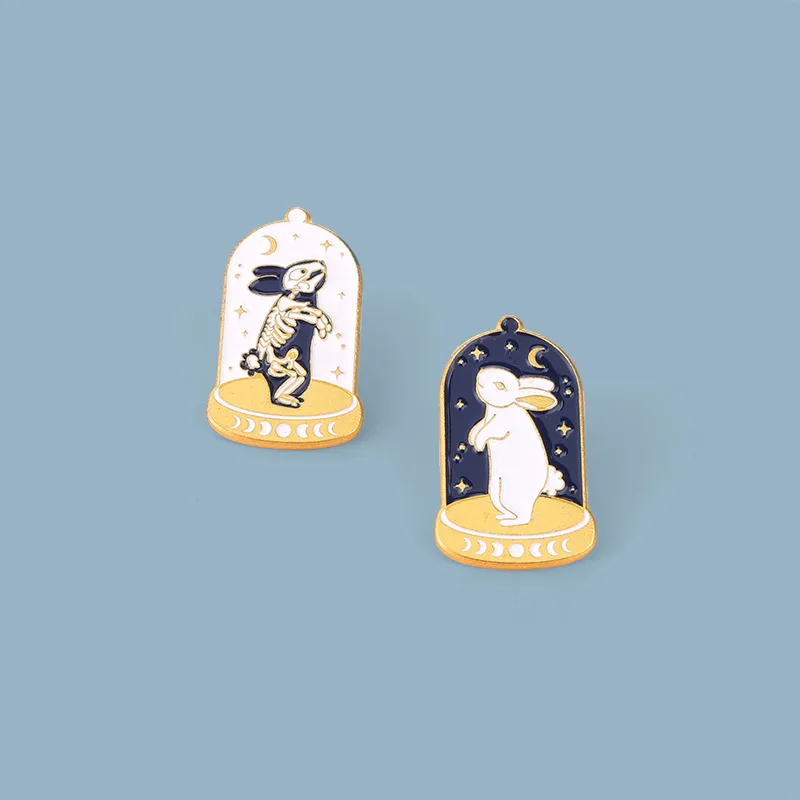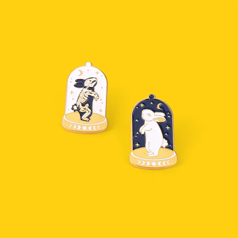 Эмалированная брошь в виде скелета кролика, фазы Луны, Инь и Янь, д...
