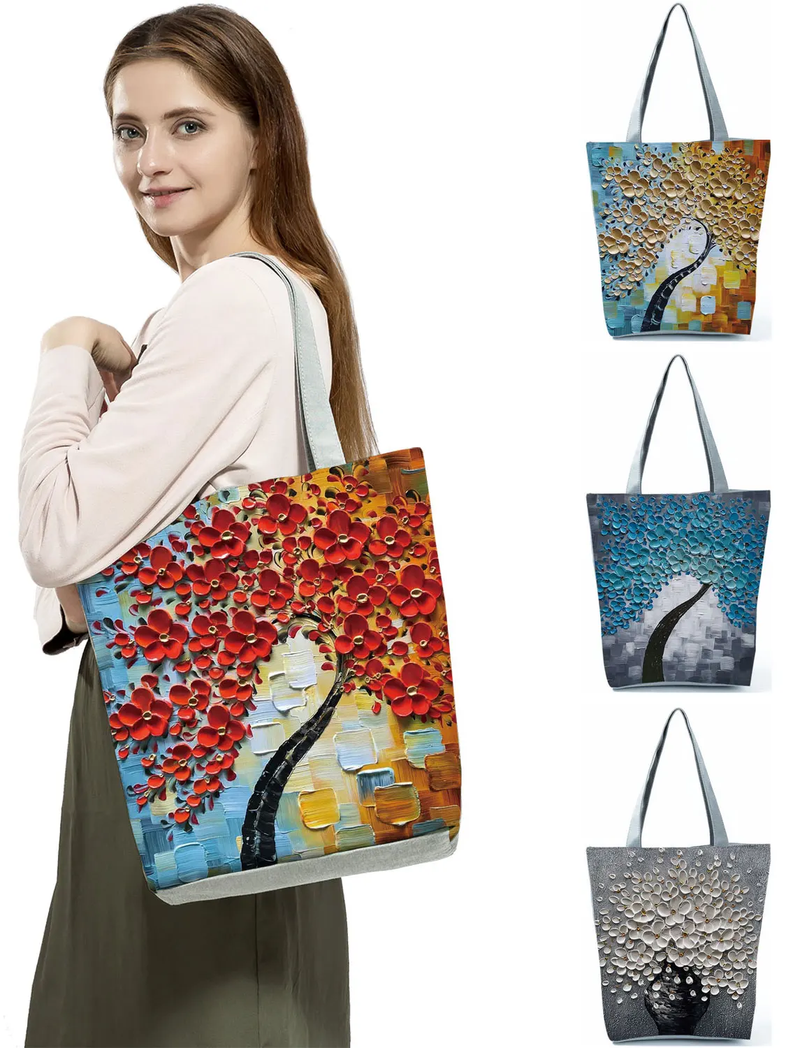 Индивидуальная сумка-тоут с масляным рисунком цветущей вишни для женщин, женские элегантные сумки, многоразовые сумки для покупок, сумка-тоут через плечо с принтом
