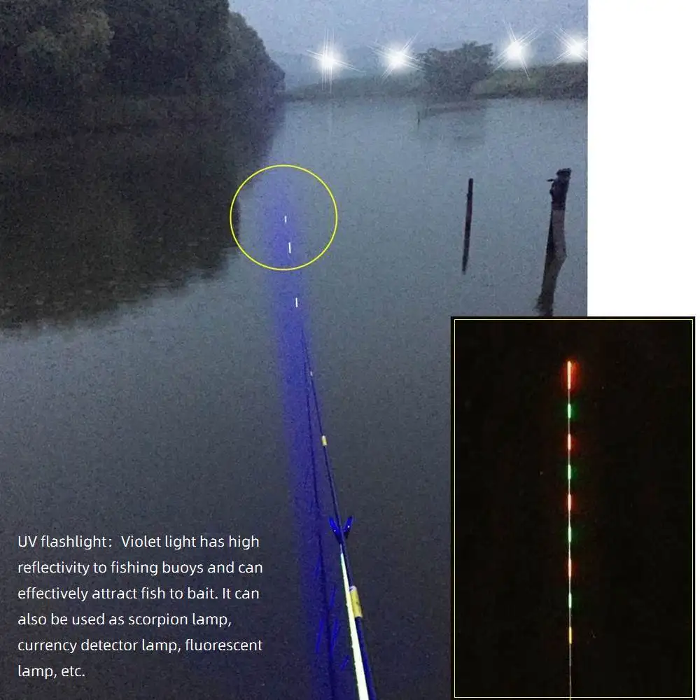 Фиолетовый светильник: фиолетовый светильник обладает высокой отражательной способностью к рыбацким буям и может эффективно притягивать рыбу к приманке. Он также может использоваться как лампа-Скорпион, лампа-детектор валют, флуоресцентная лампа и т. д.