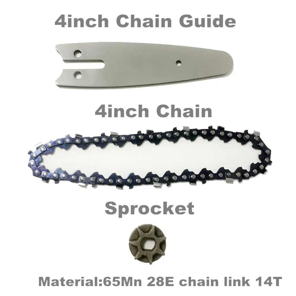 2. Цепь цепной пилы и аксессуары направляющих колес изготовлены из высокоскоростной стали 65Mn, с высокой твердостью, быстрой скоростью нарезки и улучшенной эффективностью.